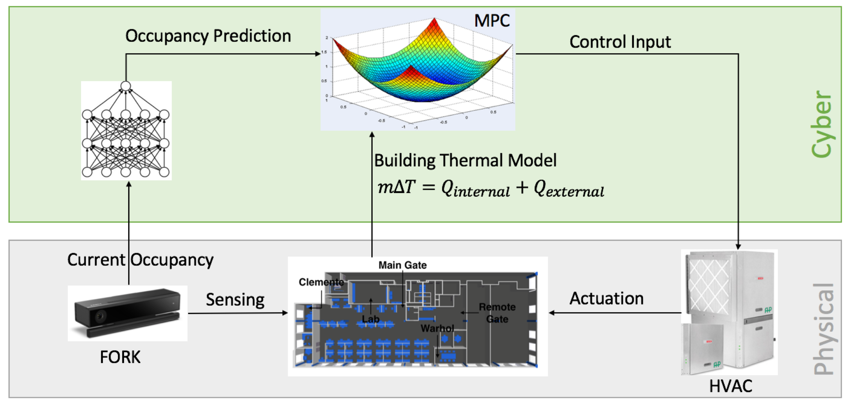 This project will design, implement, and evaluate a human-in-the-loop sensing and control system for energy efficiency of HVAC and lighting systems, which takes into account occupant comfort. Current HVAC systems operate by assuming maximum occupancy in each room, which leads to a significant energy waste. A novel lightweight solution will be developed to estimate number of occupants in an area accurately at real-time using a depth sensor. Body shape and height of the individuals will be sensed and used to control parameters of multi-stage HVAC system (set point, stage, duty cycle) for achieving better comfort as well as optimizing energy consumption. It will be integrated with existing sensing and actuation infrastructure, e.g., Volttron to collect large volume of real-world data for constructing models of number of occupants and occupant comfort. The solution brings humans into the loop by taking their feedback to improve model parameters and engage them to control HVAC and lighting systems to save energy. Carnegie Mellon University will leverage its long-standing relationship with Bosch Research to develop and test the solution at the CMU campus in realistic scenarios. Stony Brook University will help designing and implementation of the control aspect of the solution.